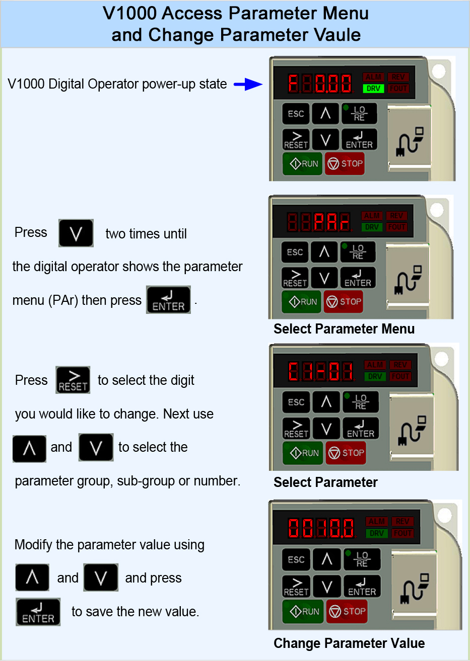 | Guide to programming the Yaskawa V1000 Inverter | ||